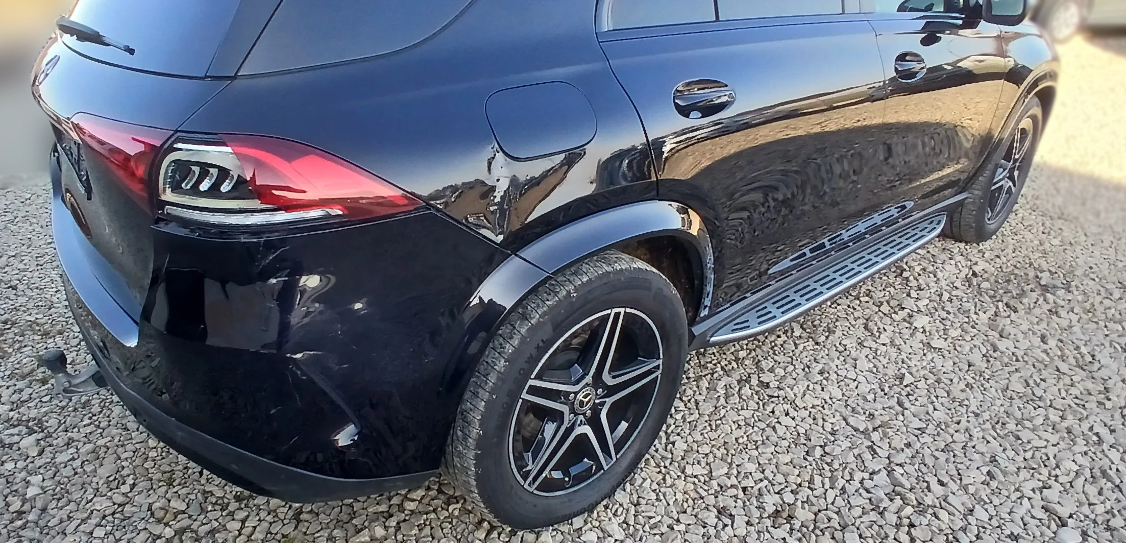 Mercedes-Benz GLE 2022 года — флагманский кроссовер немецкого производителя с мягкогибридной дизельной системой. Автомобиль технически полностью исправен. Заводится и ездит. Незначительные повреждения имеются на заднем бампере, крыле и фаре, что видно на фото. Все подушки безопасности целы